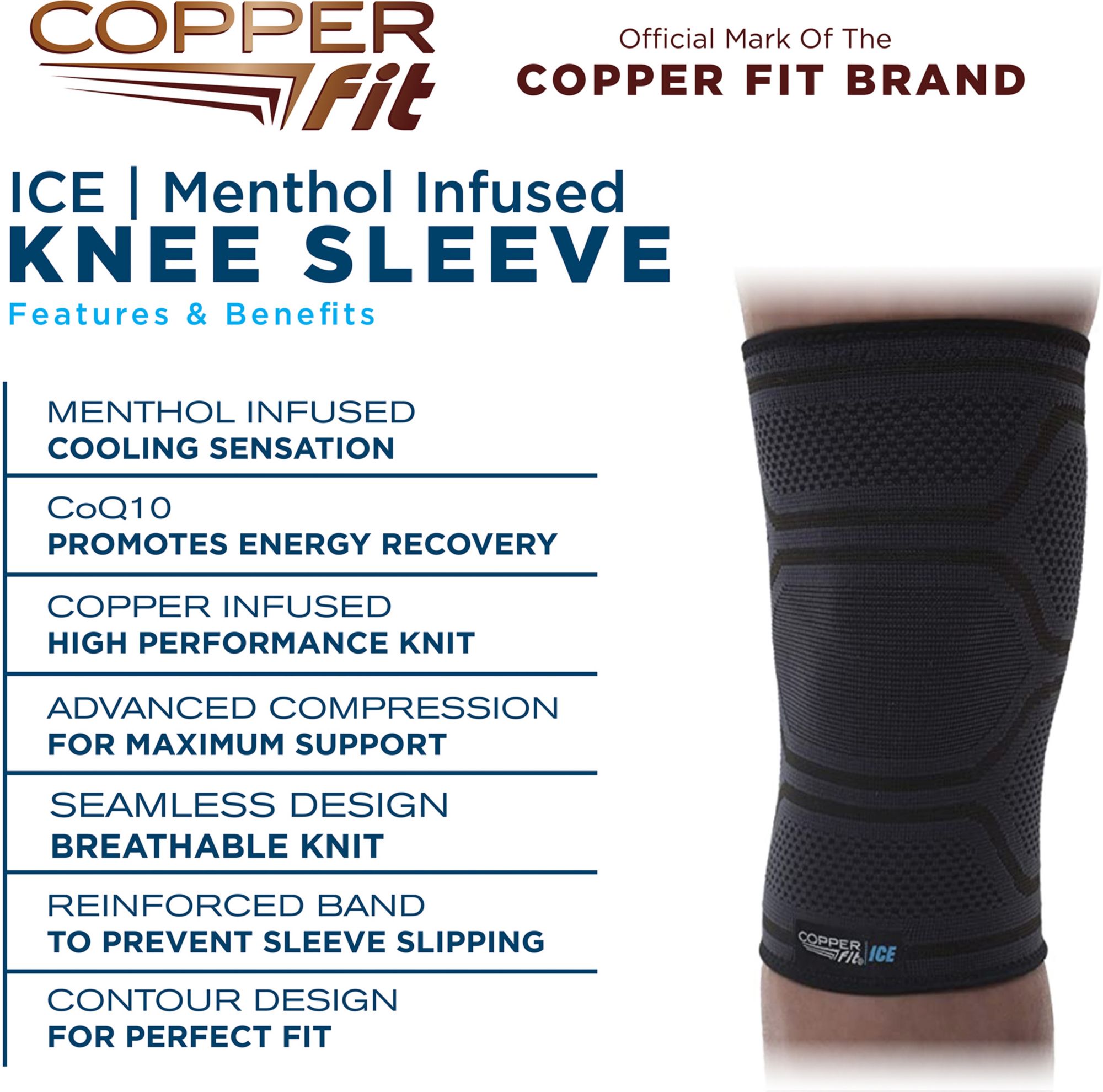Copper Fit Ice Knee Sleeve Infused With Cooling Action Menthol 2xl Walmart Com